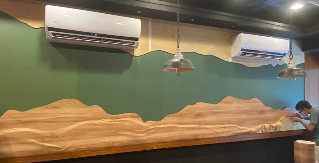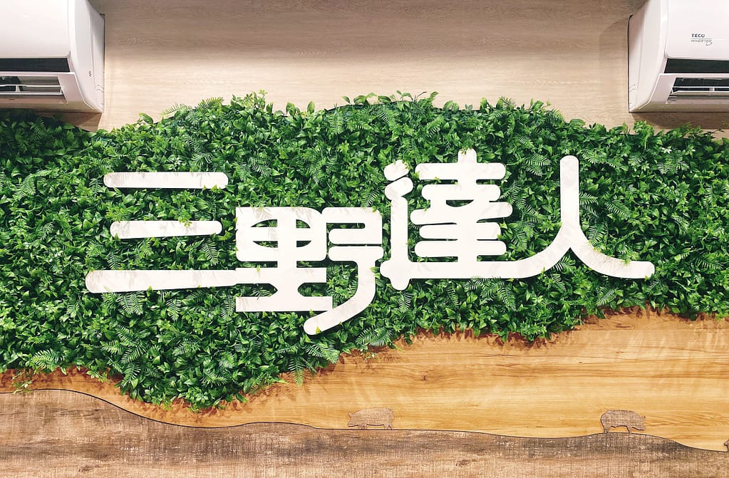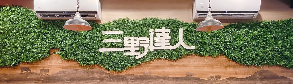 三種木皮不同質感 堆疊在一起卻又有和諧的美感,整體設計一面不同往常的植物牆,提升店內用餐氛圍