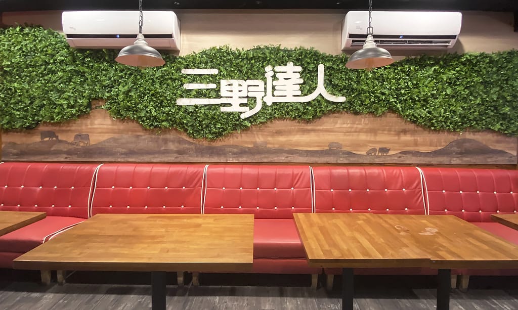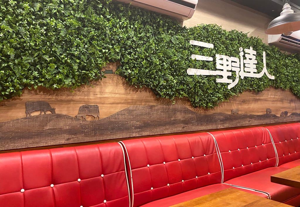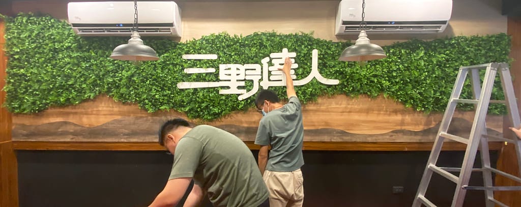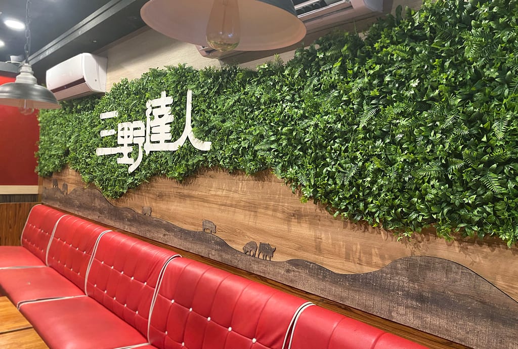 在店內滿是紅色裝潢的情況下,老闆希望能有一面植栽牆 增添一點綠