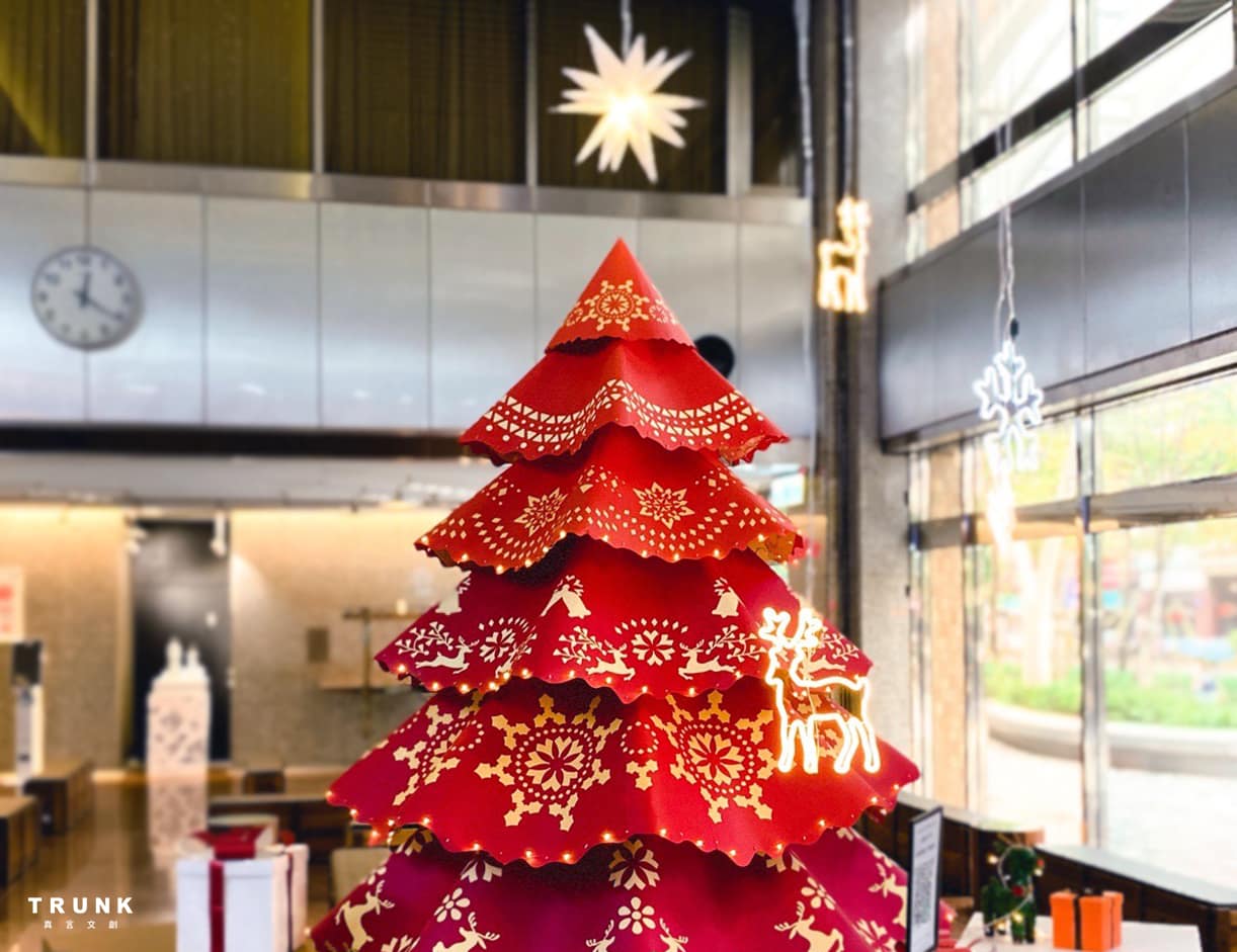 換掉塑膠材質的人造聖誕樹,改用進口環保紙,製做高三米的紙藝聖誕樹擺放於台灣電力公…