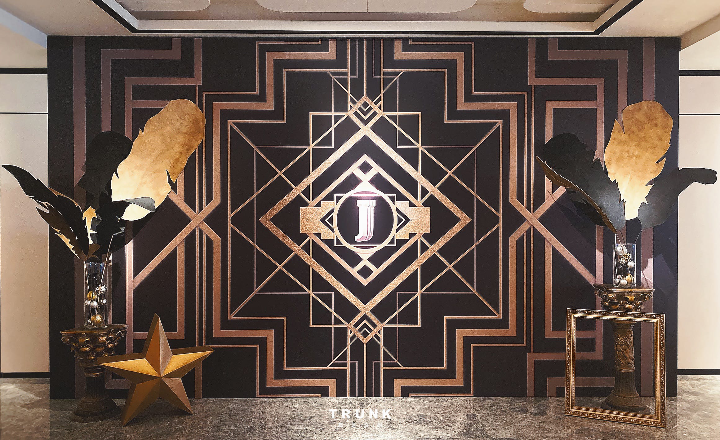 於私人招待會所舉辦生日派對以大亨小傳為主題,黑金的設計更顯低調奢華,從大門的金色…