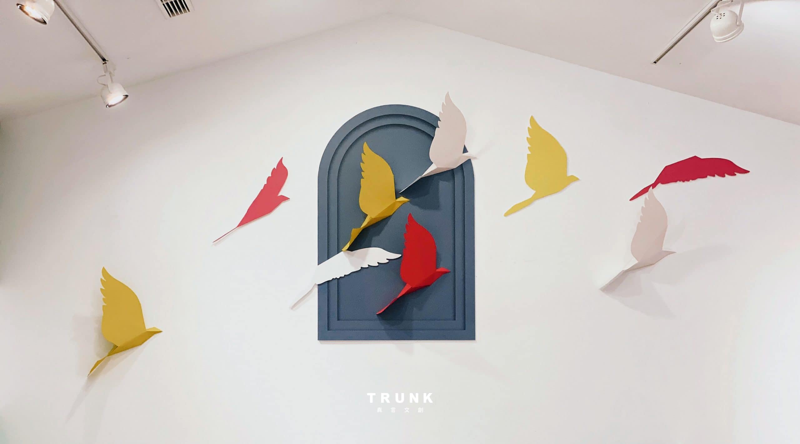 婚紗店櫃台牆面佈置由人行道經過就可從落地窗看見櫥窗裡簡單大器的紙花利用小巧思使點…