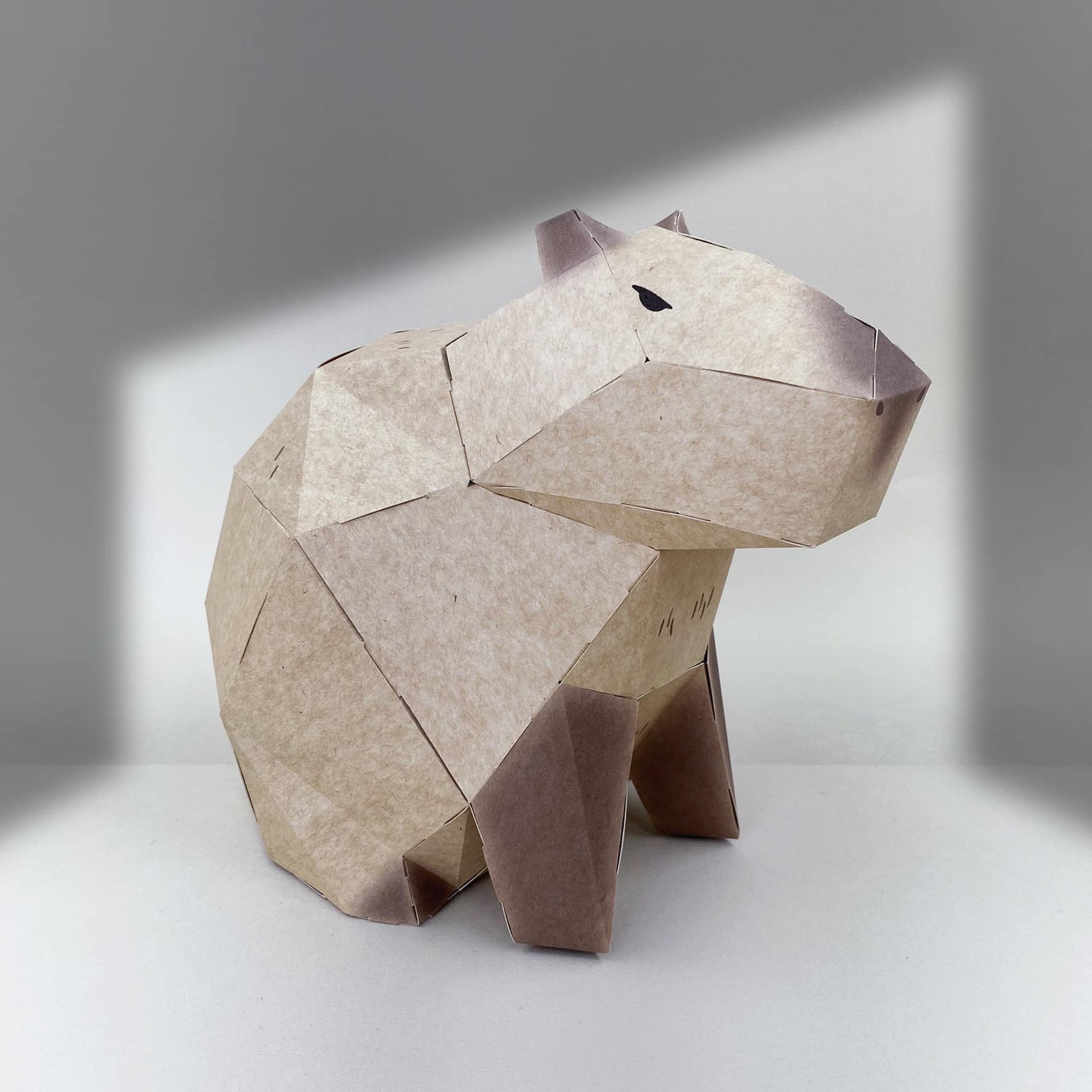 用客戶產品的吉祥物水豚設計產品造型包裝,整隻紙模型皆用”卡榫式“拼接,完全不用膠…