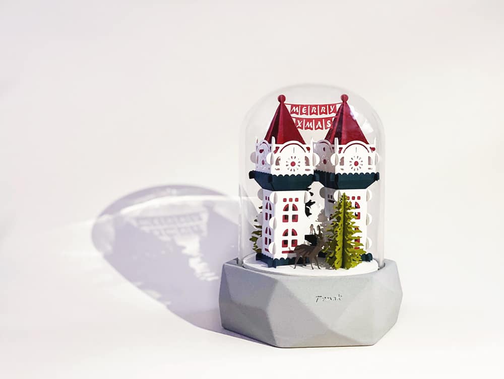 首創獨一無二的手工紙雕音樂盒,精緻紙雕場景在玻璃罩裡,隨著音樂轉動。 底座為環保…