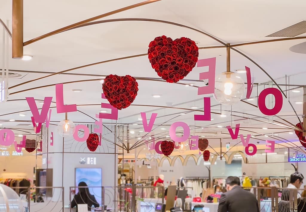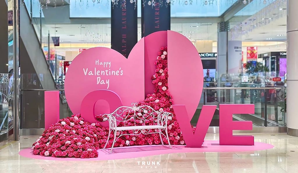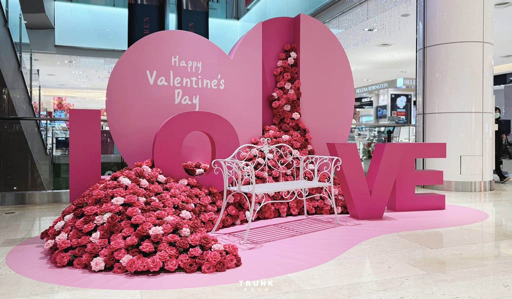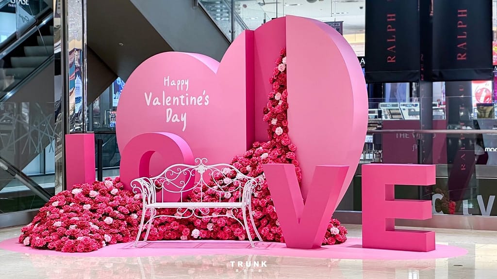 Filled with romantic Valentine's Day elements, plus a chair for visitors to sit and take photos.